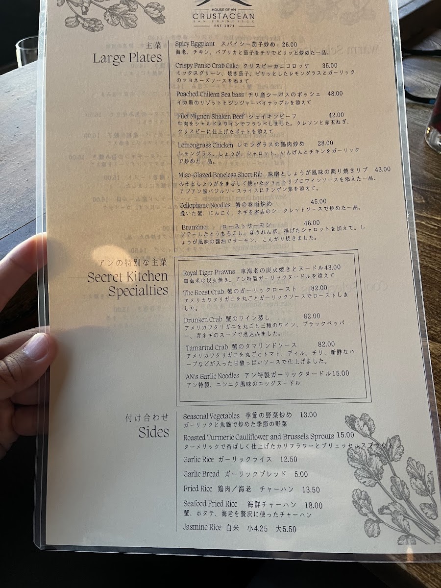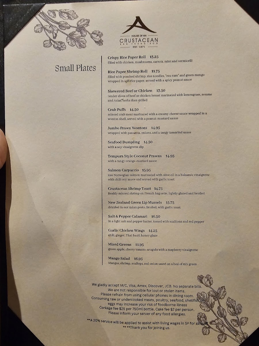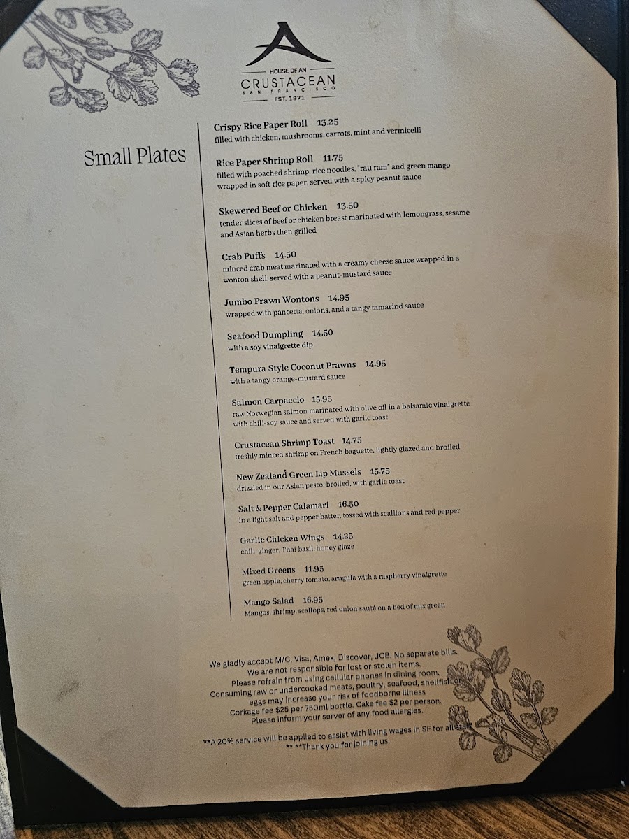Crustacean Restaurant Menu